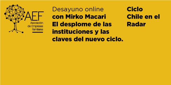 Desde AEF queremos incentivar la conversación entre nuestros socios en un ambiente distendido y de confianza para tratar temas y desafíos transversales a las familias empresarias. Estas instancias se realizarán periódicamente y en cada reunión trataremos un tema con un grupo de personas que compartan elementos en común. 1º reunión: Jueves 30 de septiembre, 18:30 [...]