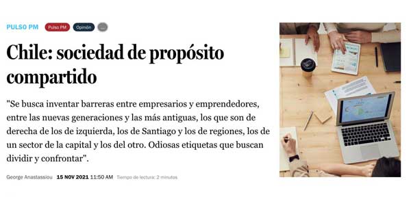 George Anastassiou hace un llamado a construir un Chile bajo la mirada de una sociedad de propósito compartido, dejando de lado las diferencias.