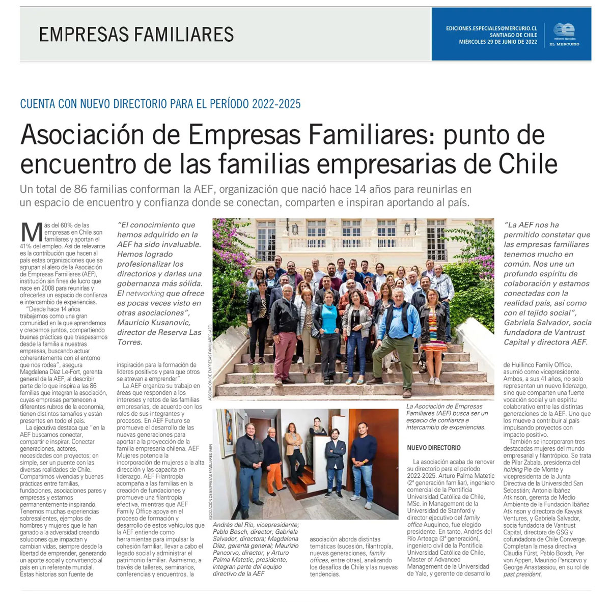 La Asociación de Empresas Familiares fue parte de una edición especial sobre el tema publicada en el diario El Mercurio.