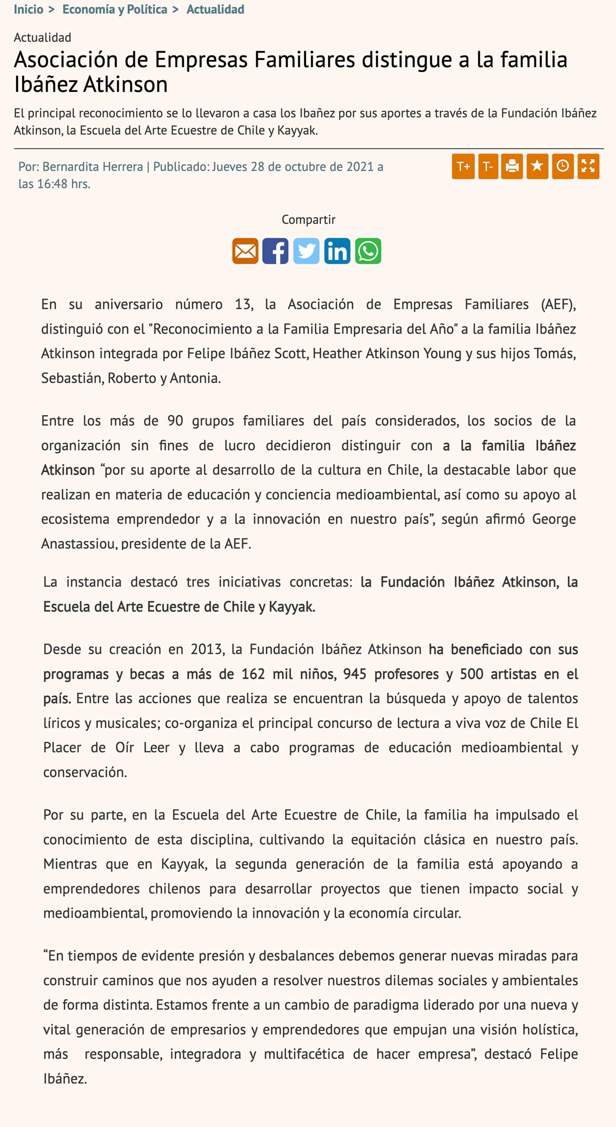 Familia Ibañez Atkinson en Diario Financiero