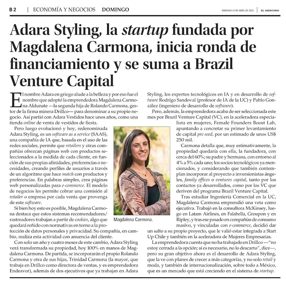 Los avances y cambios que está experimentando Adara Styling, emprendimiento que creó hace poco más de un año y al cual se están sumando su padre y hermana, fue destacado por El Mercurio.